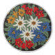 An image of a floral pattern with a needlework look of Edelweiss white Alpine flowers of Europe on your product. Blue, red, yellow, and white colours. Leontopodium alpinum of Switzerland, Germany, and Austria.