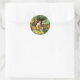 lovely colourful vintage painting of adam in the garden of eden with beautiful flowers, trees, lake, lion, peacock, deer, and with adam sitting down next to the water's edge patting the deer. pretty painting with adam from adam and eve story of genesis in the old testament, as he sits next to the water a deer sits near him, a lion looks on, a peacock, sits on a tree branch, and an elephant is coming towards him in the distance, with pink and purple flowers, big palm tree, and lakes. elephant,