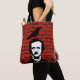 Tote your macabre poetry around in this Edgar Allan Poe silhouette with Black Raven and script on Red bag.