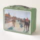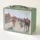 This is a standard metal lunchbox that appears to work just fine. We designed this box ourselves with an uploaded photo and custom text on the front and back. It looks absolutely beautiful except the front of the lunchbox is not centered like it shows in the photo. The print borders don't align with the inset flat part of the box where the preview photo online showed it perfectly centered in there. The back looks nice and centered though.