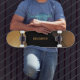 This modern deck features a bold black-and-gold cosmic, galaxy-inspired design. It serves as a personalised canvas where you can easily update the name, colours, and font to reflect your unique identity. A striking choice for your next skate session or as a decorative piece for your room. Create your own custom look today to match other items in our collection. ©Susanne Sachers - Sunny Wanderlust 🌞✈️