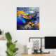 Edgy Modern Blue Yellow Metallic Mushroom Pop Art Poster