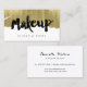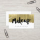This edgy makeup artist business card features a painted faux gold foil background, and the word "Makeup" handwritten in bold calligraphy.