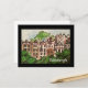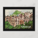 Attractive, colorful, Watercolour painting ( on a postcard) of Ramsay Garden - the iconic houses next to Edinburgh castle. It has a black border.