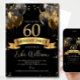 Editable 60th Birthday Invitation: Black & Gold Ba Invitation