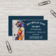 This editable business card features art supplies and paint splashes to the left and the business details to the right. This information is editable so go ahead and change the details as well as the font style, size and colour. On the back is a field for additional details which is editable, as well. The background colour on both sides can be changed, too. This business card can be used for any art-related business. Photo credit: Taelynn Christopher, 2018.