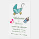 This beautiful, editable sign features a baby carriage at the the top with the details of the event below. There are illustrations of a baby bottle and a pacifier, as well. The text is editable so go ahead and change the details as well as the font style, size and colour. This can be used for a baby shower, baby's birthday etc.