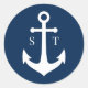 Editable Background Colour Monogram Anchor Wedding Classic Round Sticker