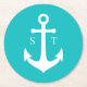 Editable Background Colour Monogram Anchor Wedding Round Paper Coaster