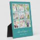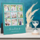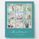 Photo Plaque with 9 square photos arranged in a grid layout each with a white border around them against an editable background colour (click customise to change background colour). You can also add your family name in a stylish calligraphy font and the year established. Perfect for wedding gifts, family keepsakes, etc.