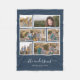 Blanket with six photos arranged in a grid layout each with a white border around them and all against an editable background colour (click customise to change background colour). You can also add your family name in a stylish calligraphy font and the year established. Perfect for wedding gifts, family keepsakes, etc.