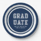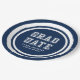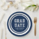 Varsity style Graduate paper plate featuring white stripes against an editable background colour (click customise to change).
