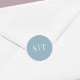 This monogram wedding sticker features the initials of the wedding couple in white against an editable background colour; to change it from dusty blue to the colour of your choice, click the customise button. Check out other matching wedding items here https://www.zazzle.com/collections/editable_color_classic_round_monogram_wedding_1-119000260232212352?rf=238364477188679314&tc=rc .