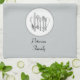 A simple design with custom script text and featuring a set of silverware on a pretty white table napkin embellished in greys and black on a light grey background. Add your logo, change background colours and more, even save your design for later.