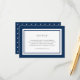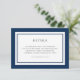 This modern classic wedding details card features an editable colour; to change it from blue to the colour of your choice, click the customise button and change both the front and back background colour.
