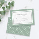 This modern classic wedding RSVP card features an editable colour; to change the colour of the border and back background from sage green to the colour of your choice, click the customise button and simple change both the front and back background colour.