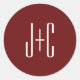 Editable Burgundy Red Background & White Text Classic Round Sticker