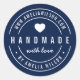 Round Modern Bold Handmade With Love round sticker featuring the word "Handmade" in bold font, "with love" in modern script, a cute heart and a double border for your web address and name in between it in bold that is easy to personalise all against a background colour that is editable (click customise). It's perfect for hobbyists, crafters and makers of handmade goods like artists, knitters, etc.