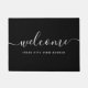 Doormat featuring the word "Welcome" in modern calligraphy script and that you can personalise with your property name or street address all against an editable background colour (click customise to change) that's perfect for your own home or your rental property, hotel, bed and breakfast, etc.