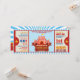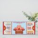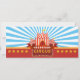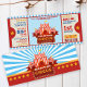 Invite everyone to the big tent for a spectacular birthday party at the circus with our vintage blue circus ticket invitation templates. This circus ticket birthday invitations features red circus tent with glowing light signboard on a pale brown vintage style admit one ticket design. Colour theme is fully editable! click customise to change the background colour. Design reverse to a circus tent personalise with your little one's name on an editable background colour. Now, come one, come all, step right up to the greatest circus party on earth!
