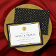 This modern classic save the date card features a faux gold foil border and circle on the front and faux gold foil polka dot back side. This card also has an editable background colour; to change it from black to the colour of your choice, click the customise button and change both the front and back background colour. Check out other matching wedding items here https://www.zazzle.com/collections/editable_color_gold_round_monogram_wedding_1-119122458464023248?rf=238364477188679314&tc=rc .