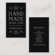 Stylish vertical social media business card with the words "Handmade with Love" between flourishes all in white with an editable background colour (click customise to change). This stylish handmade business card is ideal for crafters and makers of handmade goods, like artists, knitters, dressmakers, etc who want a way to let the people they meet in real life know how to find them and their work/portfolio online and on social media. This versatile card can also be used as a product tag for your handmade goods.