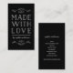 Stylish vertical social media business card with the words "Made with Love" between flourishes all in white with an editable background colour (click customise to change). This stylish handmade business card is ideal for crafters and makers of handmade goods, like artists, knitters, dressmakers, etc who want a way to let the people they meet in real life know how to find them and their work/portfolio online and on social media. This versatile card can also be used as a product tag for your handmade goods.