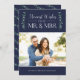 A modern, stylish holiday photo card with the phrase "Merriest Wishes from the Mr. and Mrs". Features whimsical hand drawn leaves and berries. You can customise this invitation with any background colour of your choice. Visit our store to see our complete collection of holiday cards and matching accessories.
