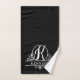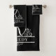 Elegant split monogram letter K Bath towel set set on a black background. Background colour can easily be changed by clicking on "Personalise this template" to "Click to customise further" then on the left hand side under layers you will find the background colour link. Click on it and change your colour!