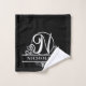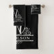 Elegant split monogram letter N Bath towel set set on a black background. Background colour can easily be changed by clicking on "Personalise this template" to "Click to customise further" then on the left hand side under layers you will find the background colour link. Click on it and change your colour!