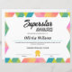 Introducing the Editable Colourful Superstar Student Award, a vibrant way to celebrate outstanding achievements in the classroom! This eye-catching award features a fun and playful design, perfect for recognising students who shine brightly. Easily customise it with the student’s name, date, and a special message to make it truly personal. Ideal for teachers and educational programs, this award inspires students to continue excelling while providing a memorable keepsake they’ll cherish for years to come!