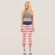 Nautical style capri-length leggings featuring a white stripes pattern with an editable background colour, click the customise button to change the background colour of the front and waist layer.
