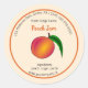 This editable label features a light background with a peach-colored ring. In the center is an illustration of a peach. At the top is the contact information for the company/ business, the company name and the product name. Below, is the ingredient list and the website information. All text is editable so go ahead and change the information as well as the font size, color and style. You can also change the background and ring colors.