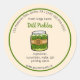 This editable label features a light background with a green ring. In the center is an illustration of a jar of pickles. At the top is the contact information for the company/ business, the company name and the product name. Below, is the ingredient list and the website information. All text is editable so go ahead and change the information as well as the font size, color and style. You can also change the background and ring colors. This is good for any type of pickles.