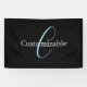 Editable Cursive Script Monogram Black Blue White Banner
