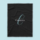 Editable Cursive Script Monogram Black Blue White Fleece Blanket
