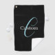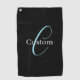 Editable Cursive Script Monogram Black Blue White Golf Towel