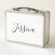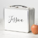 Editable Cursive Script | White & Purple Violet Metal Lunch Box