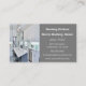 This editable business card features a photograph of a modern kitchen and the business details to the right. This information is editable so go ahead and change the details as well as the font style, size and colour. On the back is a field for additional details which is editable, as well. The background colours can be changed, too. Photo credit: sidekix-meda, 2019.