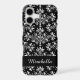 Editable Daisy Damask White on Black iPhone Case