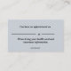 This editable business card features an illustration of an eye to the left and the details of the business to the right. On the back is an appointment reminder. The text on both sides is editable so go ahead and change the information as well as the font style, size and colour. The background colour on both sides can be changed, too.