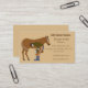 This editable business card features an illustration of a farrier/ blacksmith and a horse to the left and the business details to the right. This information is editable so go ahead and change the details as well as the font style, size and colour. On the back is a field for additional details which is editable, as well. The background colours can be changed, too.