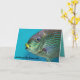 This cute card features a photograph of what looks like a fish puckering up. On the front it says, "Sending fishy kisses and..." and on the inside it says, "...Birthday wishes!" The text on the front and inside can both be changed to whatever you'd like it to say. You can also change the font style, size and colour as well as the background colours on the inside and on the back. Photo credit: David Clode, 2020.