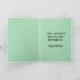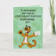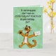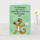 This funny birthday card features an illustration of a tiger holding an envelope against a green background. There is a message above him and a message on the inside of the card, too. So, ahead and change the words on the front and on the inside as well as the font size, style and colour. The background colours on the inside and back can be changed, too. This versatile card can be used for birthdays, anniversaries, etc.