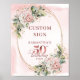 Celebrate a milestone moment with this personalized 50th birthday custom sign designed in soft watercolor florals and elegant greenery. Featuring a refined color palette of rose gold accented with blush pink, dusty pink, and pastel pink tones, this sign adds sophistication and warmth to your birthday décor. The delicate floral artwork combined with fresh botanical greenery creates a timeless and feminine look perfect for elegant milestone celebrations.