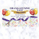 This editable grand opening sale banner features confetti at the bottom, a purple ribbon with a pair of scissors, balloons on the left and right, a banner with the date, and the business details. The text is editable so go ahead and change the information as well as the font size, style and colour. This is perfect for the grand opening of any type of business. It can also be used for a birthday, anniversary etc. You can delete the scissors if it's not needed.
