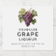 Editable homemade grape liqueur canning label featuring a bunch of red grapes. Make your own canning labels for your favourite homemade recipes. Perfect for preserves, homemade gifts or as kitchen pantry organiser.