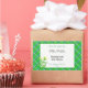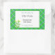 A custom retro canning or food label with handwritten style script and slab letters, and optional flowering dill weed on a green plaid pattern with small white and blue stripes for pickles, jams or other recipes from your or your small business.