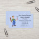 This editable business card features an illustration of a handyman on the left with the information about the company on the right. The text on the front is editable so go ahead and change the details as well as the font style, color and size. On the back, there is a field for additional details.This is editable as well. The background colors on the front and back can be changed, too. This editable business card can be used for handymen, construction companies, carpentry, renovations etc.