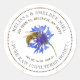 Realistic bee image alongside a bright blue flower with a dotted border. Personalise with your name, address, honey net weight, and honey product (example: raw unfiltered honey). Common honey net weight conversions: 8oz (227g), 12oz (340g), 16oz (454g), 32oz (907g), 5lb (2.27kg).